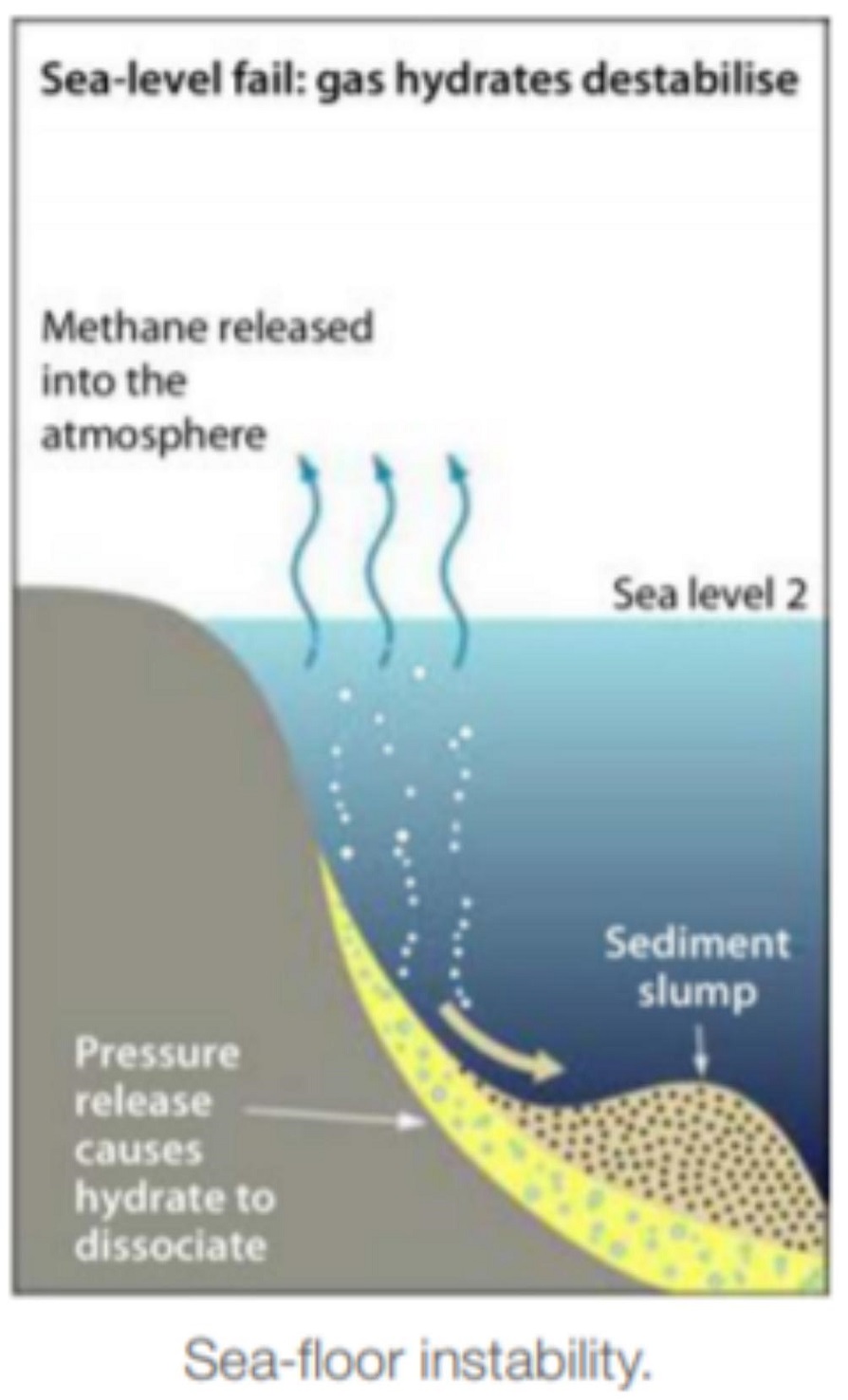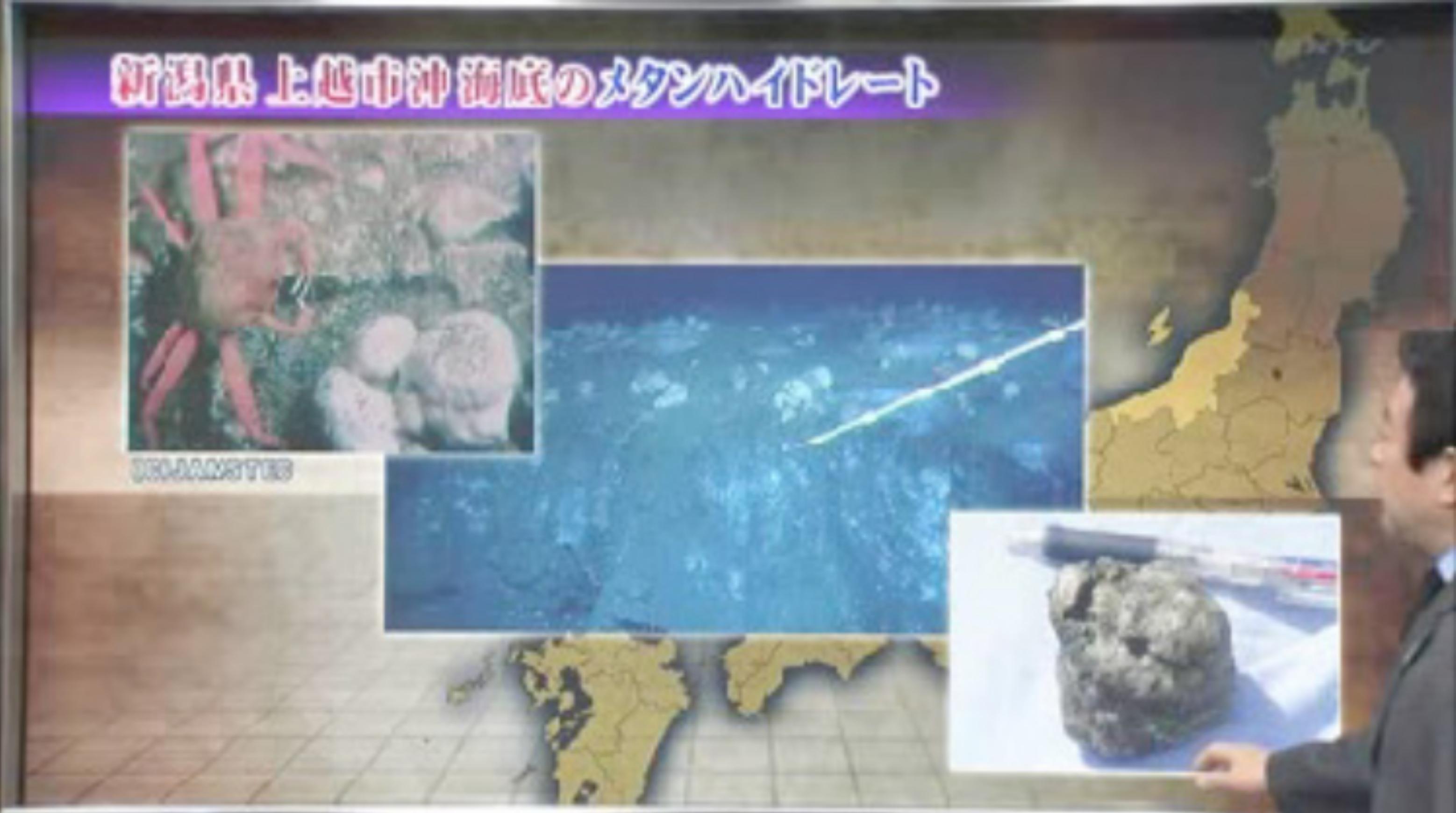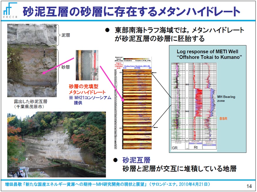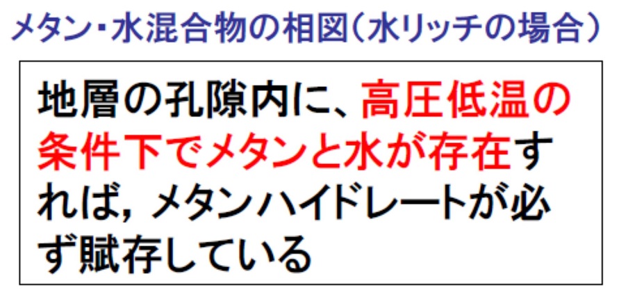 次は、その中でも特にメタンハイドレートについて、地層のどういう形態の部分に溜まるのかという話し。ほぼ、水面下の話しのようだな…。