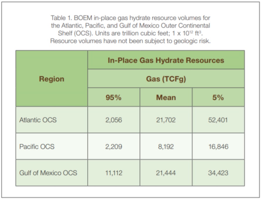 こんな風に、計算上は、大西洋、太平洋、メキシコ湾に大量のメタンハイドレートが眠っている…、と見積もられている(meanって、この場合、「平均」という意味のようだ)。