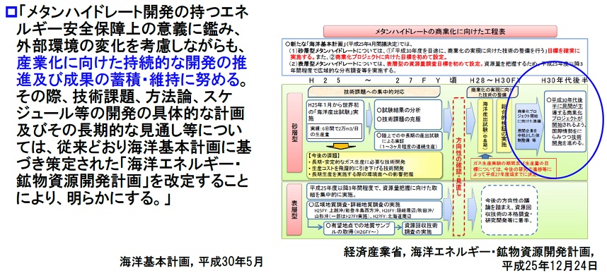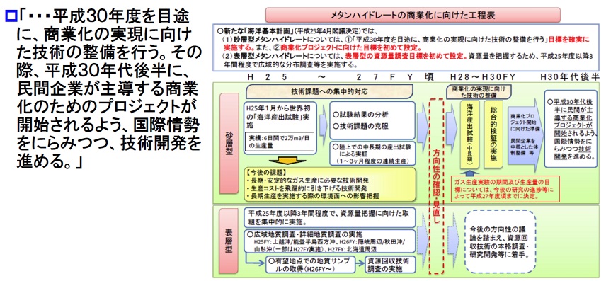 しかし、机上の計算では、大量に存在するエネルギー資源で、在来型のエネルギー資源が枯渇する事態に備え、あるいは、枯渇を先延ばししようとして各国が競って、開発に走り出しているのが現状だ。