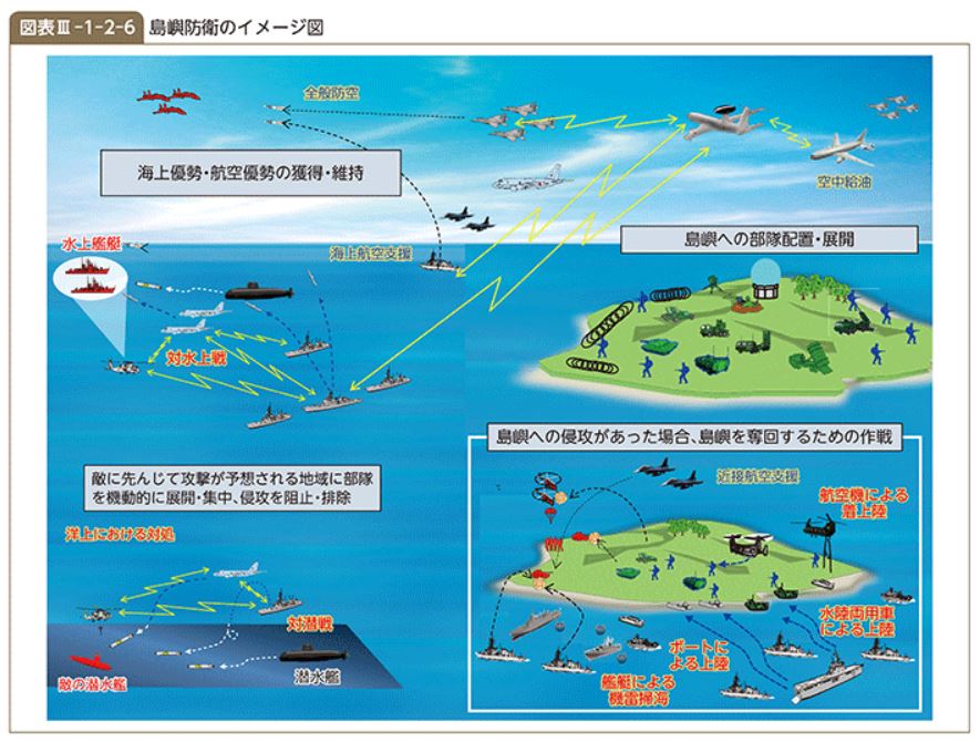 ※ 島嶼部が侵攻・占領された場合、敵は、必ずや機雷を敷設して、こっちの艦艇が接近するのを妨げるわけだ…。だから、その奪還作戦は、まず、それらの機雷を掃海する作戦から始まるわけだ…。その後に、水陸両用隊による、上陸・奪還作戦が続くわけだ。それで、「掃海部隊」と「水陸両用隊」がワンセットになってるわけだ…。納得だな。