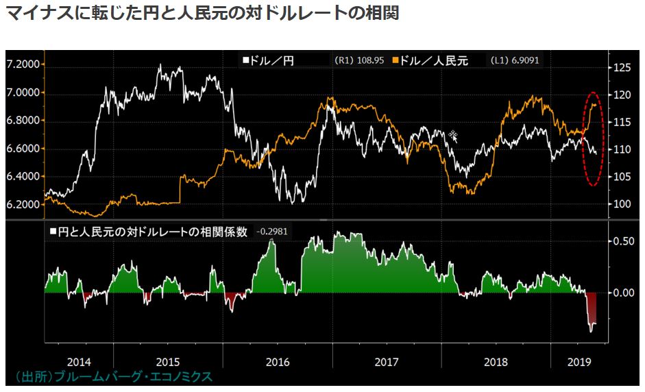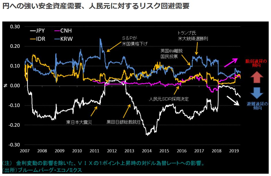 【インサイト】高リスク人民元と強い円-貿易戦争拡大が導く高変動率( https://www.bloomberg.co.jp/news/articles/2019-06-02/PSD0UC6K50XS01?srnd=cojp-v2 )