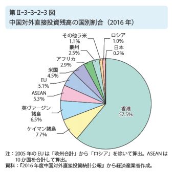※ 2016年の中国の対外直接投資残高の国別割合だ…。香港に6割近くも、投資しているんだな…。今般の香港デモは、そういう中国の投資を、深く傷つけることだろう…。背後に、アメリカがいると言うのも、あながちフェイクでは、無いかもな…。