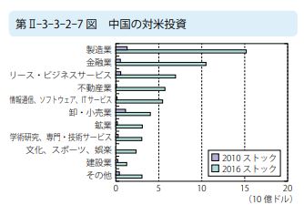 ※ 対米投資の2010年と2016年の比較だ…。凄い増え方だな…。買えるものは、何でも買ったんだろう…。製造業にダントツで、投資している…。次が、金融業か…。不動産は、第4位か…。「学術研究、専門・技術サービス」という辺りも、気になるところだ…。