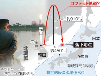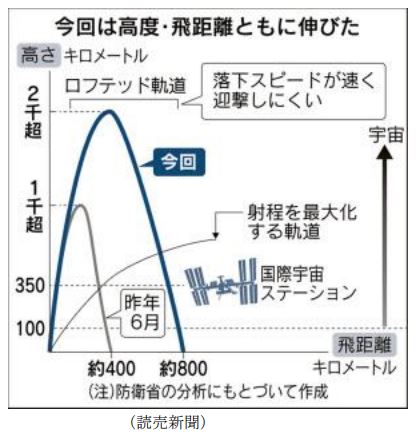 ※ ロフテッド軌道の場合、上空900キロ以上から落下して来るんで、加速度がついてスピードを増し、迎撃ミサイルで迎撃するのが、より困難になると言われている…。