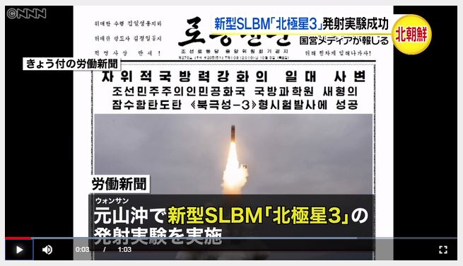 ※ 実は、今回の北朝鮮のSLBMの発射については、いち早くその兆候を捉え、発射の警鐘を鳴らしていた情報があった…。 CSIS と、38ノースだ。いずれも、偵察衛星の衛星写真の分析から、そう解析したものだ…。