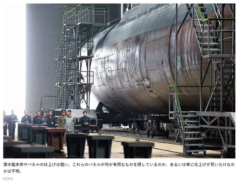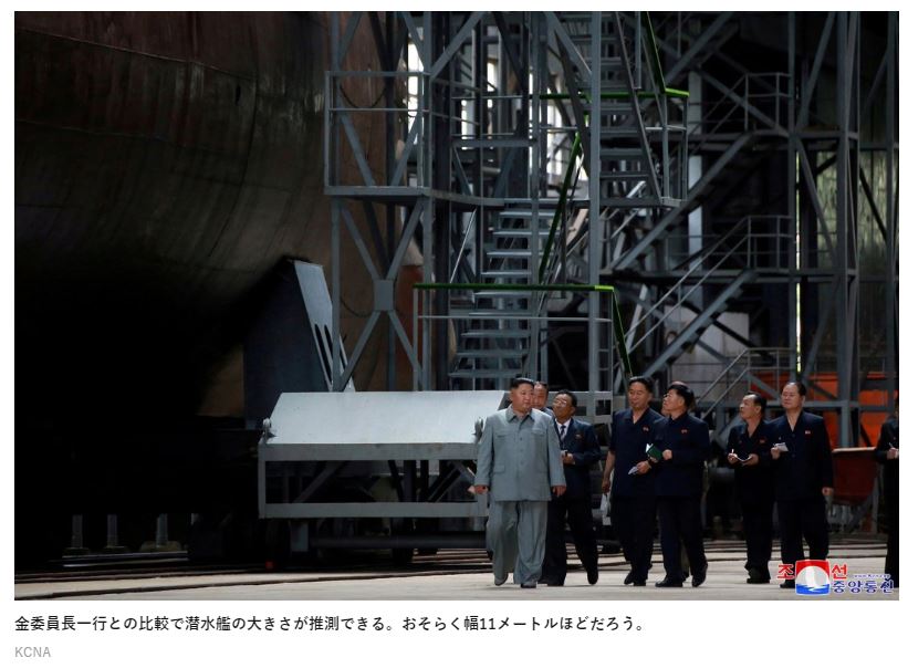 ※ 最近、金正恩氏が新型潜水艦の建造工場を視察したというニュースが報道され、その時の画像も報道されているんで、紹介しておこう…。