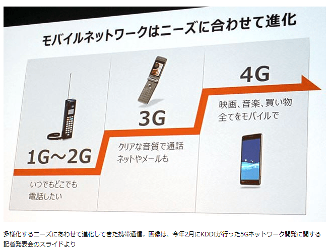 ※ Wikiの説明を、引いておく。『5Gとは、「第5世代移動通信システム(だい5せだいいどうつうしんシステム)のことである。1G、2G、3G、4Gに続く無線通信システムである。」
