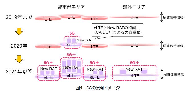 ※ 発信・送信される電波も、4Gのものと、5Gのものが混在する形になると、思われる…。そこで、端末やネットワーク網の構築過程も、そういう「混在」を前提とするもの、「混在」を包摂して行くものの方がいい、と言う話しになる…。
