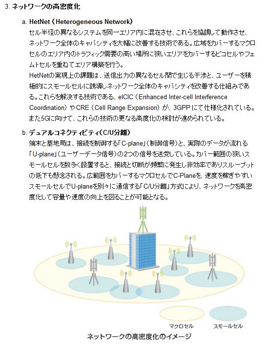 C/U分離は、新出なんで、ちょっと語っておく( 5G要求条件を満たす通信技術実現に向けた研究開発 https://www.fujitsu.com/jp/group/mtc/technology/trend/g5-requirements/ )。