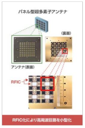 こういう感じで「壁掛けパネル」みたいなものにすると、ビルの壁面なんかに取り付けることが、可能となる…。上段の黒い四角の中には、送信素子が8×8=64個形成されているから、このパネル1枚で、64×4×4=1024個の送信部分がある…、と言う話しになるわけだ…。