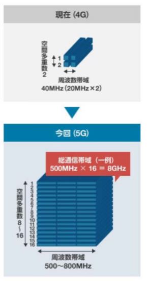 さらに、使う電波の周波数も、4Gが20MHzだったのに対し、5Gは500~800MHzの高周波帯をも使う…。電波の周波数は、波の山と谷の数でもあるから、周波数が高くなればなるほど、細かい波となり、より多くの山と谷を送り出し、伝搬させることができる…。それだけ、送信できる「1」と「0」の数も、多くなるわけだ…。