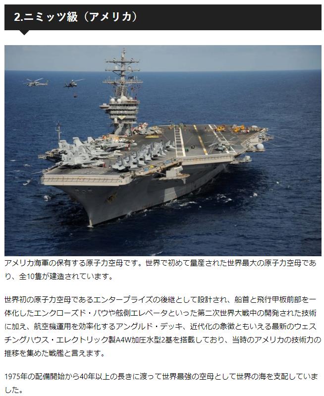 何でもそうだが、「物(モノ)」は割と簡単に作ることができる…。しかし、それを操作・運用する「人材」を、訓練・育成・選抜するのは、大変だ…。米軍の「原子力空母10隻」体制は、そういう人材5万人が支えている…。さらに、そういう人材を指揮する「指揮官」が、支えている…。そして、そういう人材を生み出す「訓練・育成・選抜のシステム」こそが、本質だ…。モノだけ作って浮かべたところで、兵隊の頭数だけ揃えてみたところで、空しいだけの話しだ…。