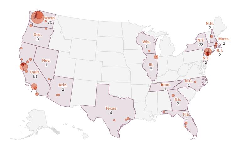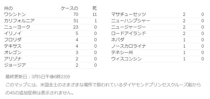 ※ 全米の州の状況だ…。ワシントン、カリフォルニア、ニューヨークの3州が深刻だな…。