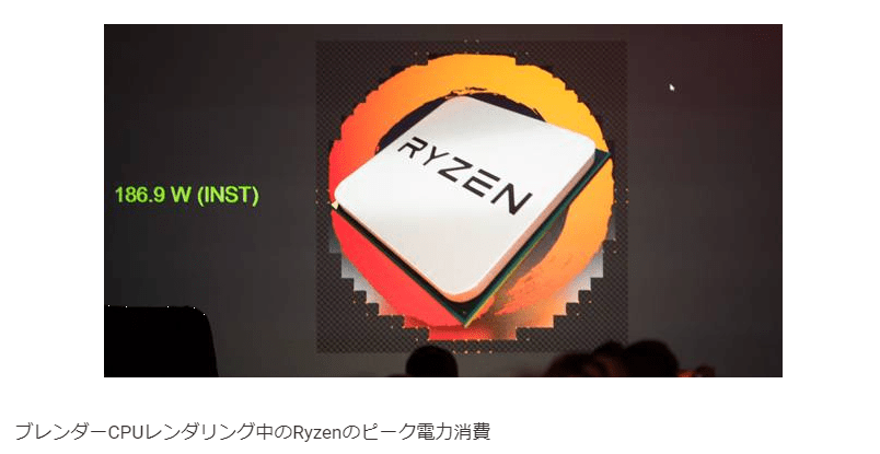 『ブレンダーCPUレンダリング中のRyzenのピーク電力消費