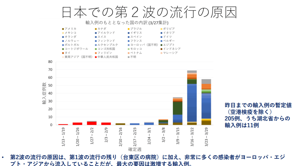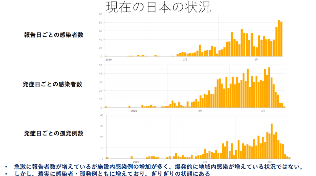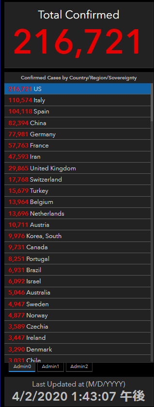 ※ 対数スケールのようだな…。大体、42日でカーブは、ほぼ「平ら」になる…。残念ながら、アメリカ、ドイツ、フランス、スペインはまだまだだ…。イタリアは、あと1週間くらいで、平らになるだろう…。イギリスは、あと3週間くらいもあるんで、まだまだ増えるだろう…。