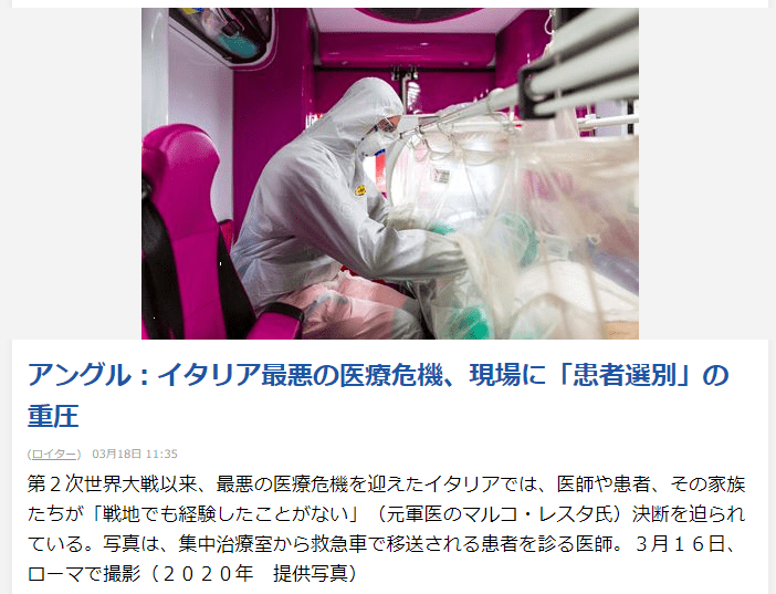 ※ 1番目の記事は、NATOが医療物資の支援に乗りだし、軍用輸送機で運搬したという記事。2番目は、ハンガリーのオルバン首相が、コロナ対策で「人権規制」やむなしの対策を取ろうとしたら、フォンデアライエン委員長が「まかりならん」と、述べた…、という記事。