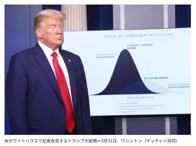 ※ こっちは、「死者数曲線」…。どの国においても、「死者」は衝撃だから、政治的な問題となる…。アメリカのトランプ政権も、対応を誤れば、「再選戦略」にも、影響が生じる…。キリスト教国は、基本が「土葬」「棺桶葬」だ(イランは、シーア派イスラム教だが、「棺桶葬」のようだ…)…。というのは、最終的に、「神の裁き」があって、天国で「復活」する可能性がある…。その時に備えて、「遺体」もキープしておくわけだ…。そうすると、こういう感染症の時には、取り扱いが難しくなる…。