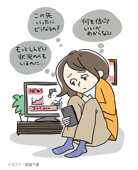 イラスト:朝倉千夏 編集部:いろいろな立ち位置の意見を知るために、識者が発信している情報をあれこれフォローするうちに、疲れてしまいます。