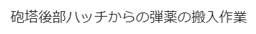 ※ 搬入作業は、「人力」で行う…。相当に、大変そうだ…。銀色部分が「弾薬」で、金色部分が「弾頭」ということなのか…。