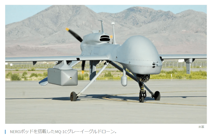 ※ 無人機(偵察機のようだな…)に攪乱用電子装置を装着させた例…。こういうものを、部隊上空に飛ばして、その下で「軍事作戦」を行う…、というわけだ…。