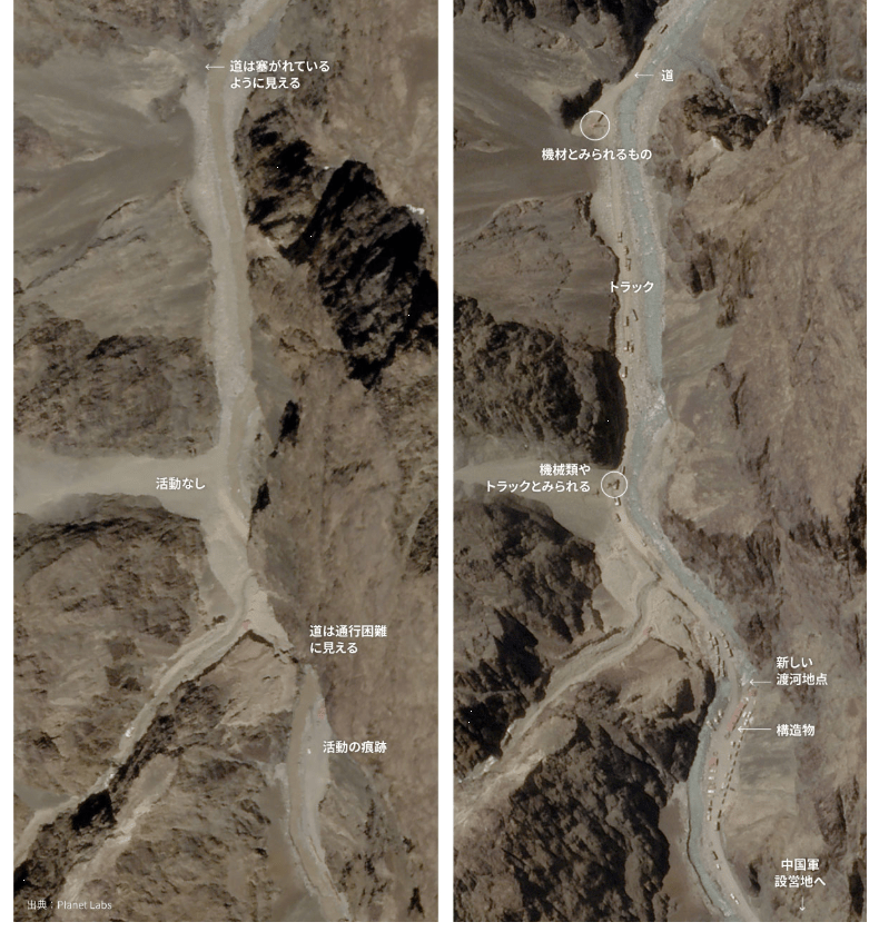 https://www.nikkei.com/article/DGXMZO60504470Y0A610C2910M00/アングル:衛星写真で判明、インド軍との衝突前に中国軍が活発化