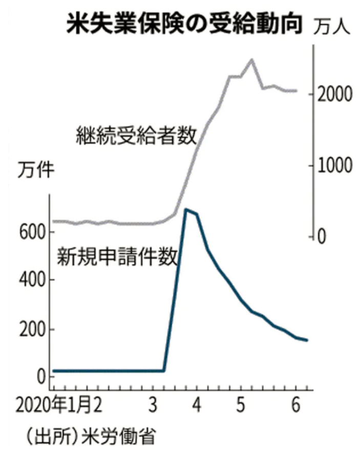 https://www.nikkei.com/article/DGXMZO60535460Z10C20A6000000/米失業保険申請なお週150万件 雇用の持ち直し遅れ