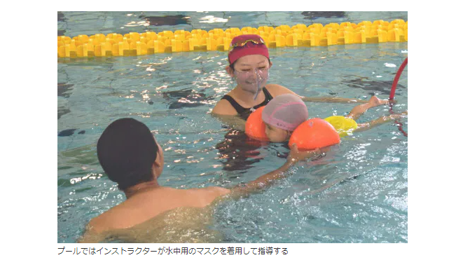 ※ 水泳教室のインストラクターも、「水中用マスク」を着用か…。このコロナウイルスは、上気道で盛んに増殖し、唾を介して、感染する…、という情報もあるので、やはり注意した方がいいんだろう…。