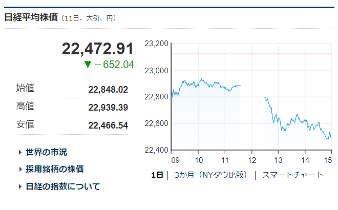 ※ 800円以上の下げだ…。
