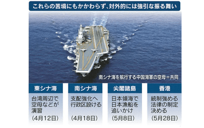 『世界にとって最良なのが第1であることは言うまでもない。残念ながら、コロナ発生後に目に付くのは第2の行動だ。中国は尖閣諸島沖に監視船を送り続け、5月8日には日本の領海で日本漁船を追いかけた。昨年5月に続き、2回目だ。南シナ海の支配を強めるため行政区を設けたほか、4月には台湾海峡で空母が演習している。