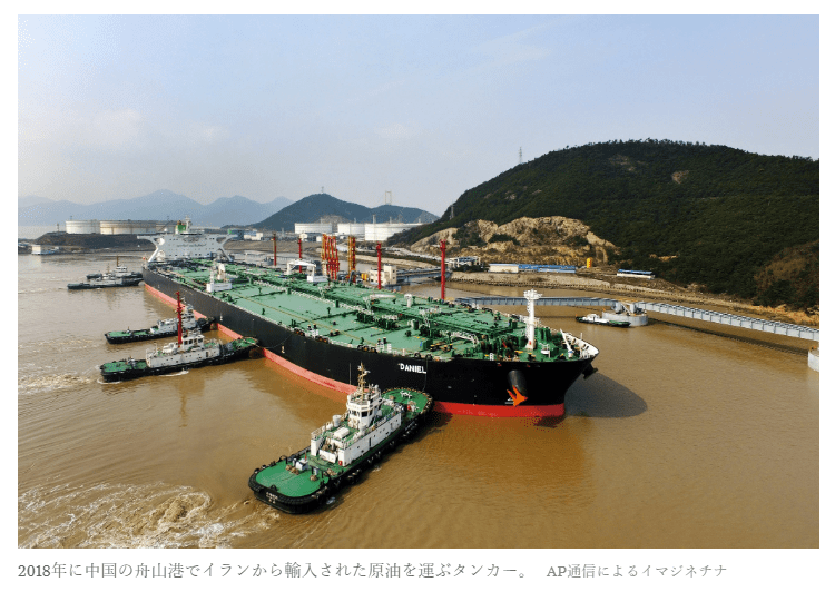 画像 2018年に中国の舟山港でイランから輸入された原油を運ぶタンカー。
