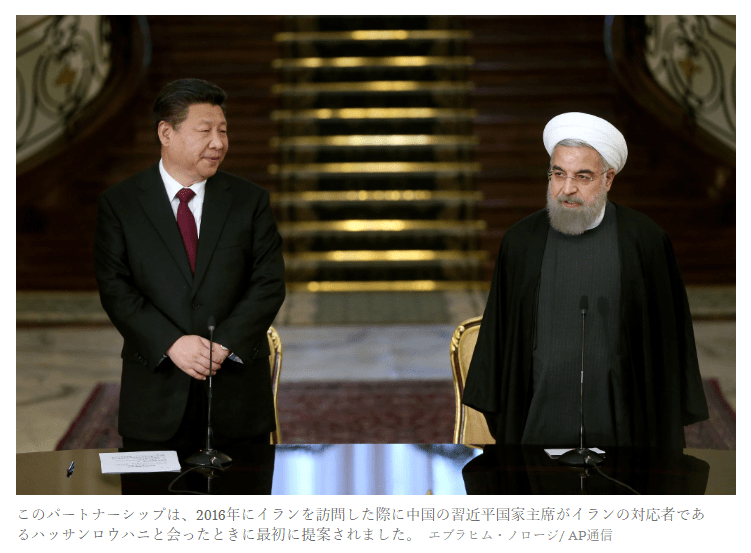 ※ 中国とイランの協定を、「軍事パートナーシップ」と規定している…。 それと、「せっかく、イランを「経済制裁」によって弱体化しつつあったのに、それを「助けて、息吹きかえらせる中国」というイメージで語っている…。 NYTだから、当然ユ…関係の読者も多いんだろう…。 どれほどの「影響力」があるものなのかは知らないが、そういう「イメージ操作」がなされている…、ということには注目しておいた方がいい…。