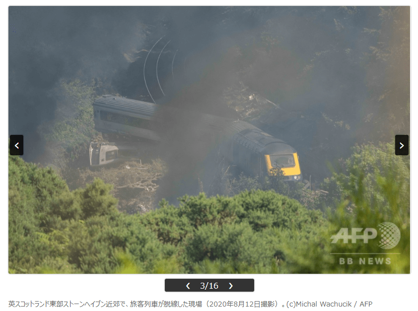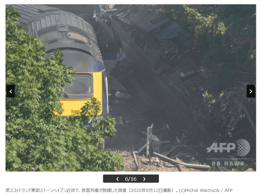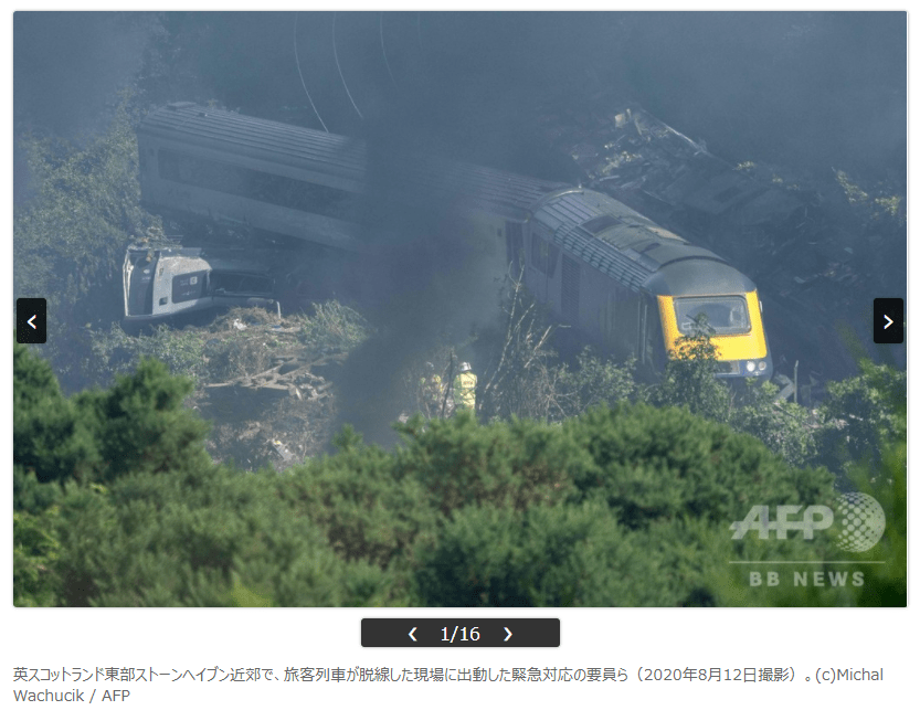 『【8月13日AFP】(写真追加)英スコットランド東部アバディーン(Aberdeen)近郊で12日、旅客列車が脱線し、警察によると3人が死亡した。スコットランド行政府のニコラ・スタージョン(Nicola Sturgeon)首相は「極めて深刻な事案だ」としている。
