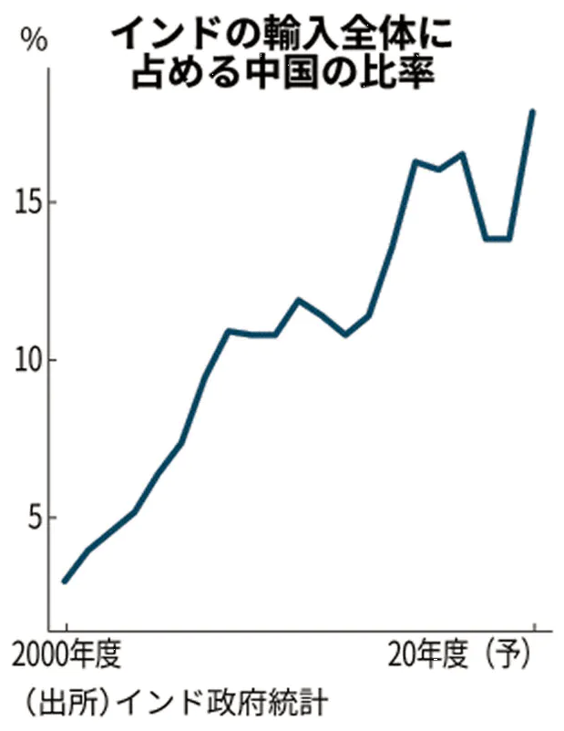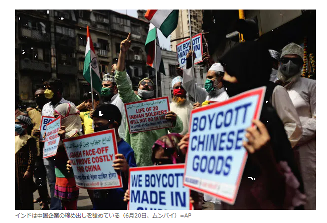 インド、政府調達で中国企業の応札制限 対立鮮明に ※「<訂正>7月29日20時に掲載した「インド、政府調達で中国企業の応札制限」の記事中、インドの中国からの輸入額が2019年度で「約4740億㌦(約49兆円)」とあったのは「約653億㌦(約7兆円)」の誤りでした。(2020/7/30 17:48)」