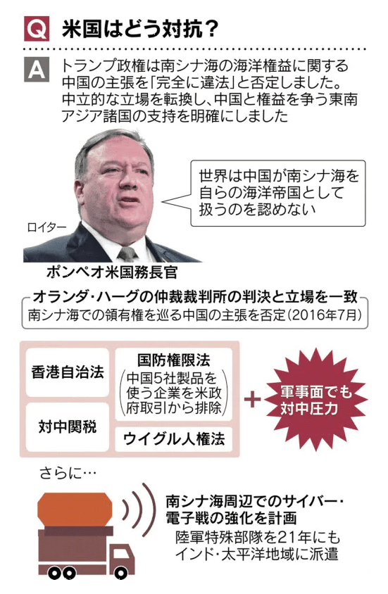 これまでにオーストラリアやインドネシアも南シナ海における中国の領有権主張を否定する書簡を事務総長に送っている。中国はこれらの国に対し、「歴史的な根拠があり、国際法との整合性は明確だ」と反発している。』