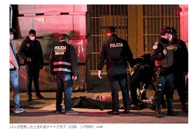 ペルー摘発騒ぎで13人死亡 外出禁止中の闇パーティー