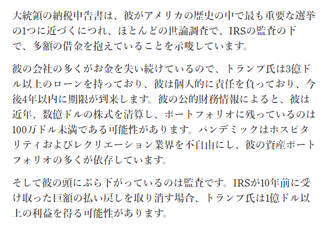 最近では新型コロナウイルスに関する政府内の公衆衛生専門家の提言を無視するなど、公然とアドバイスを拒絶することも多いが、それでも支持基盤が大きく損なわれることはない。軍上層部に対する態度も含めた侮蔑的なアプローチが、2期目の4年間に向けた11月の選挙での勝利につながるかは不透明である。