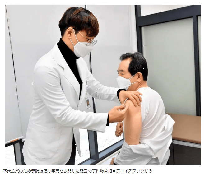 不安払拭のため予防接種の写真を公開した韓国の丁世均首相=フェイスブックから
