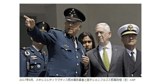米ニューヨークの検察当局はシエンフエゴス氏について、19年8月14日に逮捕状を出していたが、これまでは公表されていなかった。有罪の場合には少なくとも10年の禁錮刑となる見通しだ。メキシコでは捜査対象ではなかった。