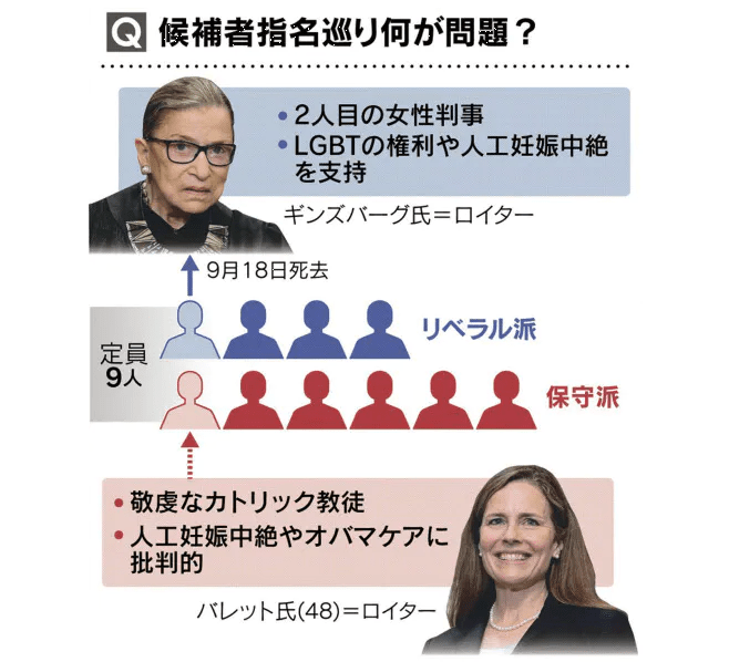 https://www.nikkei.com/article/DGXMZO64878480S0A011C2FF1000/?n_cid=DSREA001米保守派がバレット最高裁判事候補を信頼する理由(FT)