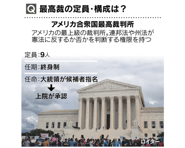 https://www.nikkei.com/article/DGXMZO64299780X20C20A9000000/?n_cid=DSREA001米最高裁 保守派が圧倒 反「中絶・移民」に傾斜