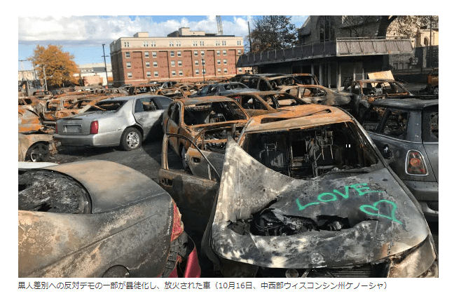 米大統領選の討論会 コロナ対策、両者決め手欠く8月下旬に白人警官が黒人男性を背後から7回銃撃する事件が起きた米中西部ウィスコンシン州の小都市ケノーシャ。街の中心部は、10月中旬になっても、暴徒によって放火された100台以上の自動車が占拠したままだ。周辺には炎上したアイスクリーム店や家具店が残っていた。
