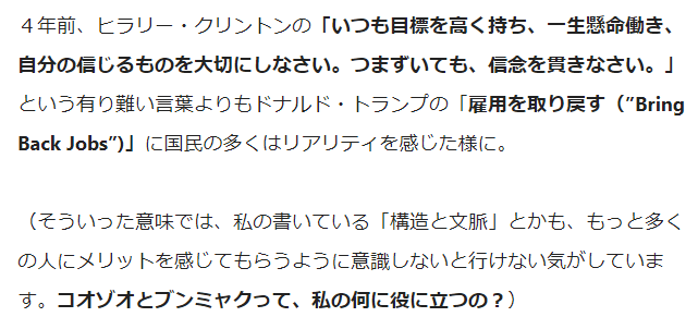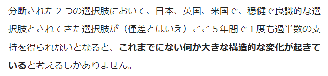 ※ 問題は、構造とか、文脈とかにあるのでは無く、「多数決原理」が妥当する基盤・前提である「社会全体が達成すべき目標・目的」に、共有されているところが無い…、というところに「根本問題」があるわけだ…。