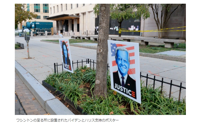 ワシントンの至る所に設置されたバイデンとハリス支持のポスター