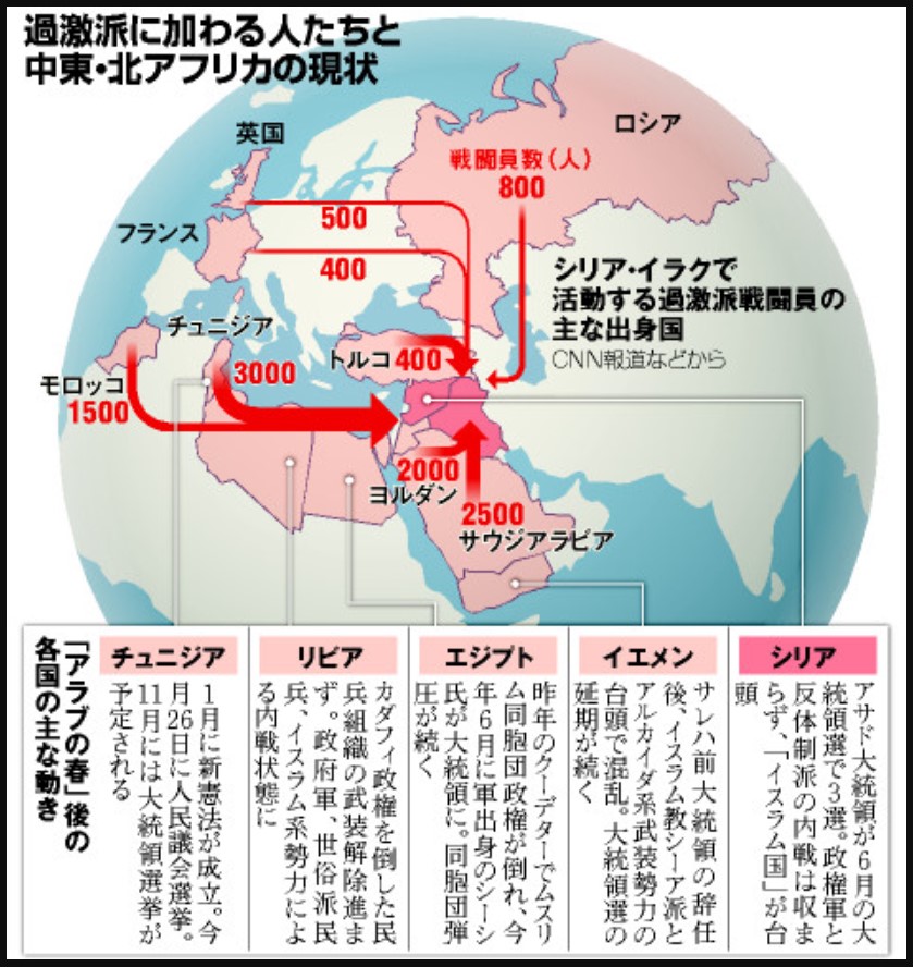 ・同年、誤った情報に基づいて始まったイラク戦争によってフセイン政権が崩壊した。民主制度に基づくアラブ世界の再編成が模索されたが、イラクの実権を握ったのは国内で多数派だがイスラム世界では少数派のシーア派だった。その結果、何世紀も続くスンニ派とシーア派の対立が再び激化した。国際テロ組織アルカイダのウサマ・ビンラディンが武力によるジハード(聖戦)を呼びかけ、スンニ派のジハード主義が勢いづいた。