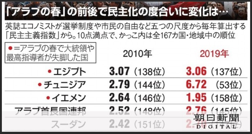 ・では、アラブの春が始まってから続いた混迷の10年は何を意味しているのだろうか。アラブ諸国の民主革命が成功する可能性は、実は民主化運動に火がつくかなり前の2003年に米軍がイラクに侵攻したことで低下していた。
