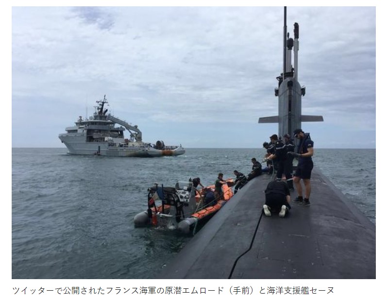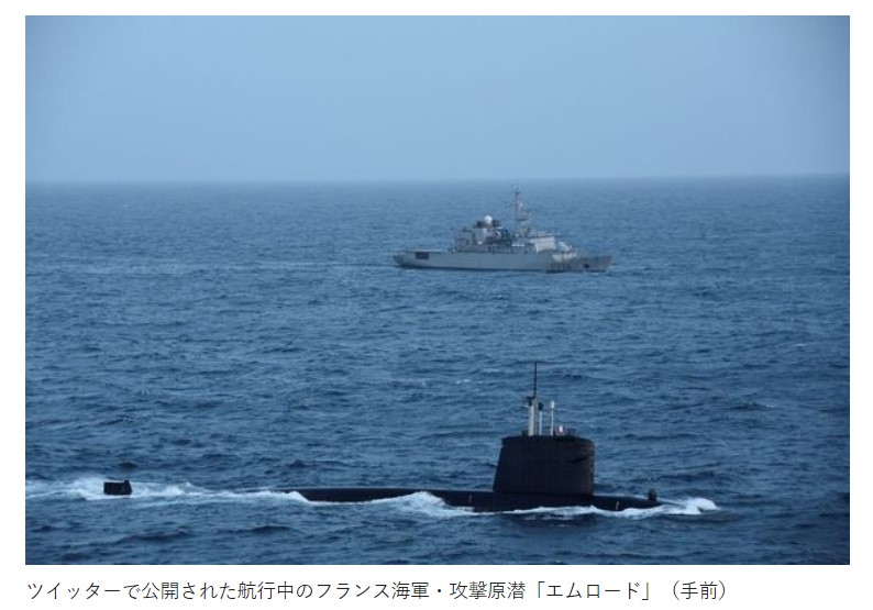 『2月8日、フランス国防大臣フロランス・パルリはツイッターで、フランス海軍攻撃原潜「エムロード(エメラルド)」が南シナ海を航行(潜航)したことを公表した。
