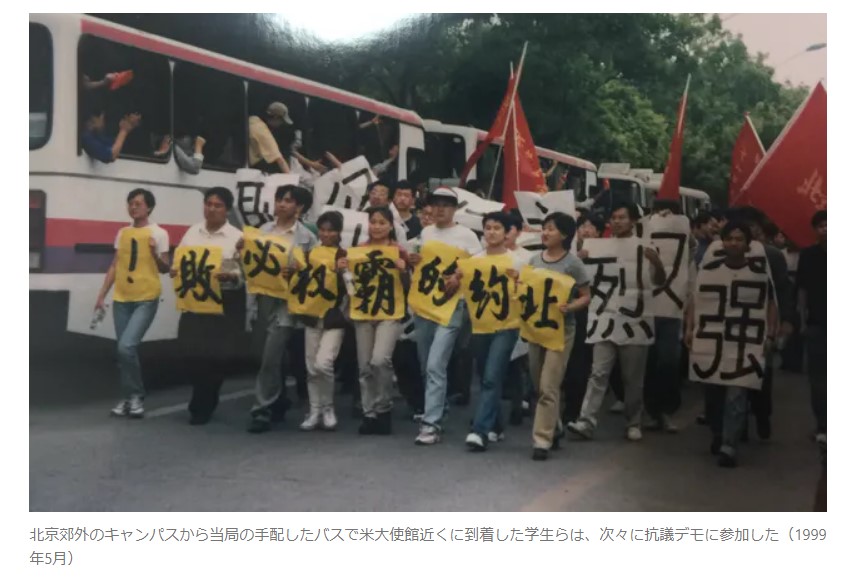 「爆撃事件が公になるとすぐ、学内で抗議デモをすべきだとの機運が盛り上がりました。一部はすでに現場に向かっていたんです。私は公安(警察)を含め当局もこれを公認するはずだと直感的に思い、学校を通じてデモを申請しました。予想通りただちに北京市政府の許可が下りて、大使館街に向かうバス5台が手配されました」