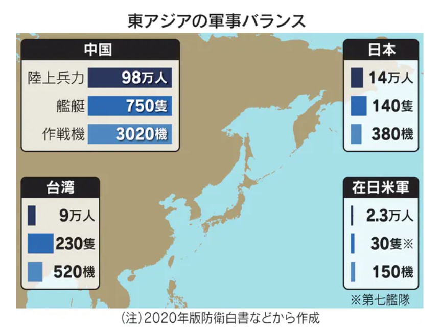 「中国の国防費は台湾の16倍まで増えた」。16日、東京・市ケ谷の防衛省で米国のオースティン国防長官と向き合った岸信夫防衛相は中台の軍事バランスの変化に触れた。台湾有事になれば地理的に近い日本への影響…