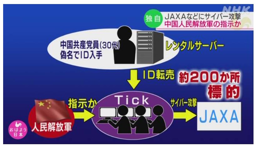 『JAXA=宇宙航空研究開発機構や防衛関連の企業など日本のおよそ200にのぼる研究機関や会社が大規模なサイバー攻撃を受け、警察当局の捜査で中国人民解放軍の指示を受けたハッカー集団によるものとみられることが分かりました。