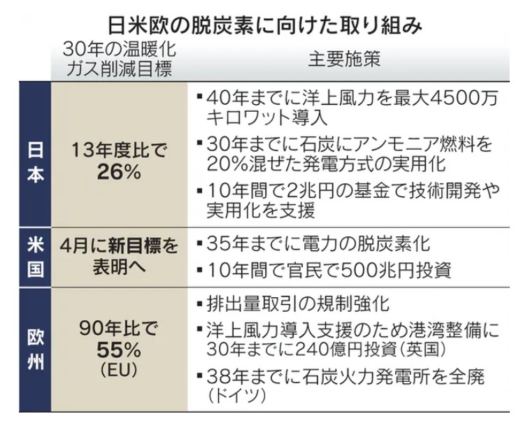 欧米は脱炭素の開発投資に積極的だ。米バイデン政権は4年間で2兆ドル(約200兆円)、欧州連合(EU)も10年間で官民合計で1兆ユーロ(約120兆円)の目標を掲げた。日本も2兆円の基金を立ち上げるが金額では見劣りする印象も否めない。